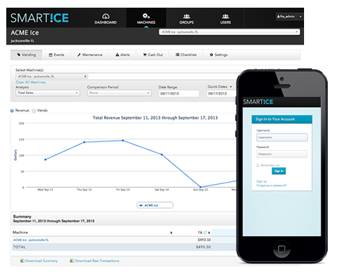 Mobile friendly, SmartIce can be used on any modern smart phone or tablet to view sales & operational statistics and remotely manage your machine.